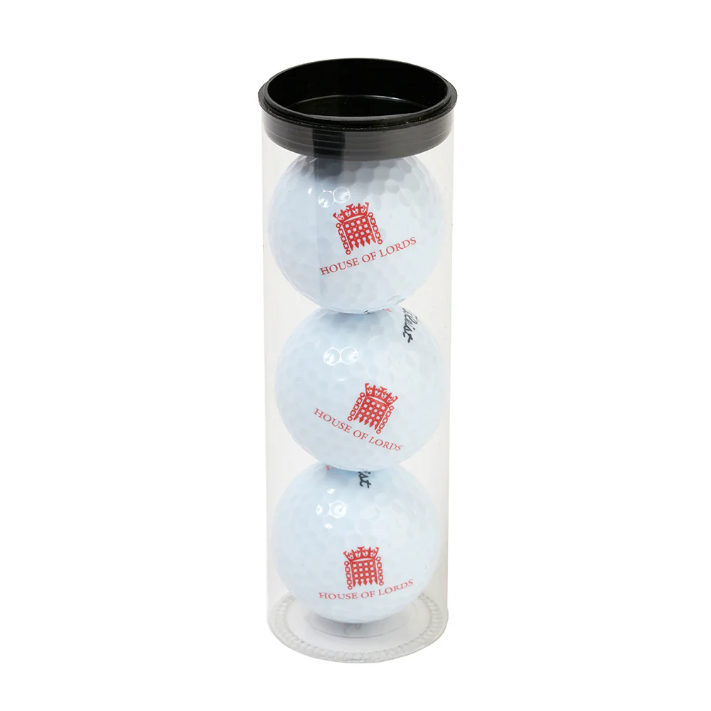 A set of three House of Lords Titleist golf balls of professional quality. These golf balls also feature the Portcullis symbol.