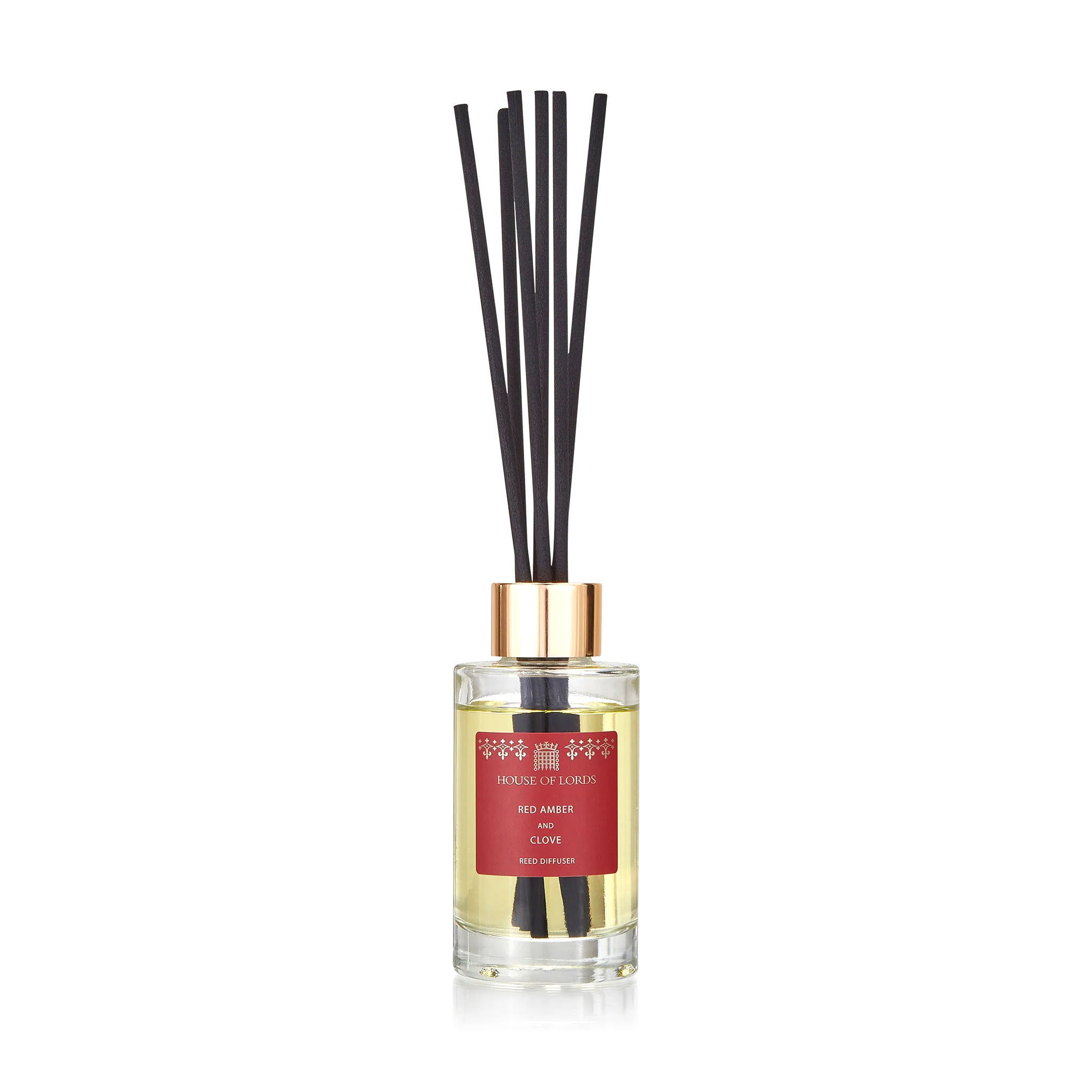 A luxury reed diffuser combining red amber and cloves for a festive fragrance throughout your home. Exclusively designed and handmade in England for the House of Lords.