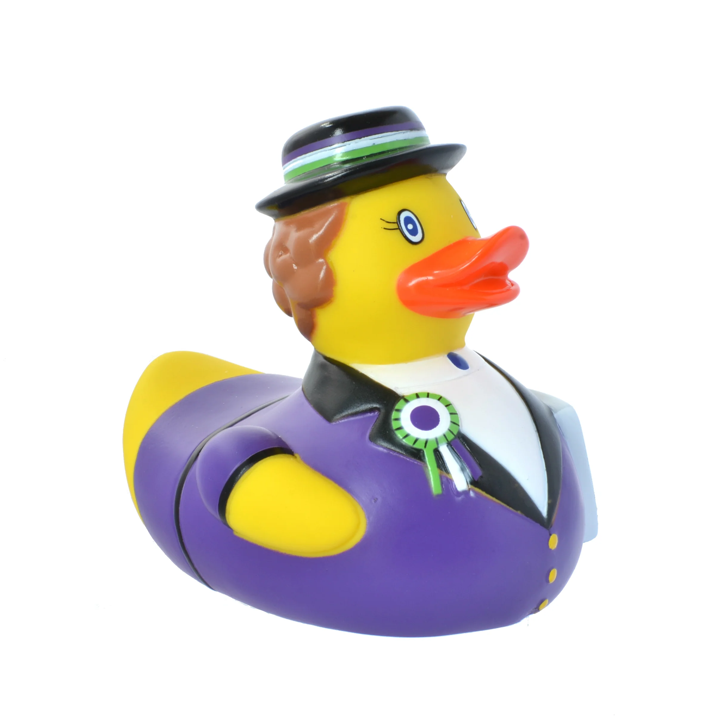Our best-selling suffragette duck, also known as the 'suffraduck' - a fun bath toy for children and a quirky "Votes for Women" mascot for adults.