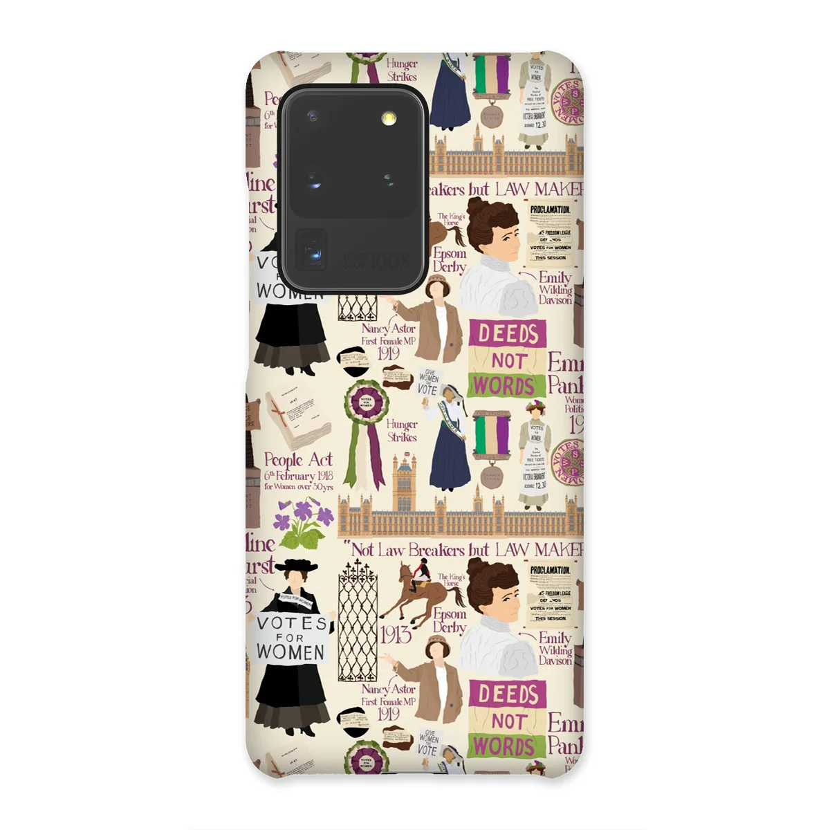 Part of our new "Votes for Women" range designed by Kent-based artist Esther Johnson, this phone case tells the story of the UK suffrage movement through a series of evocative illustrations, mottos and slogans.